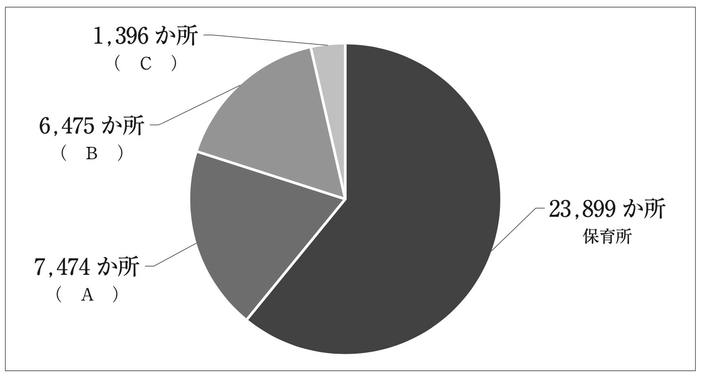問16 次の図は、令和4年の保育所等の施設・事業数である。( A )~( C )にあてはまる施設名・事業名の正しい組み合わせを一つ選びなさい。